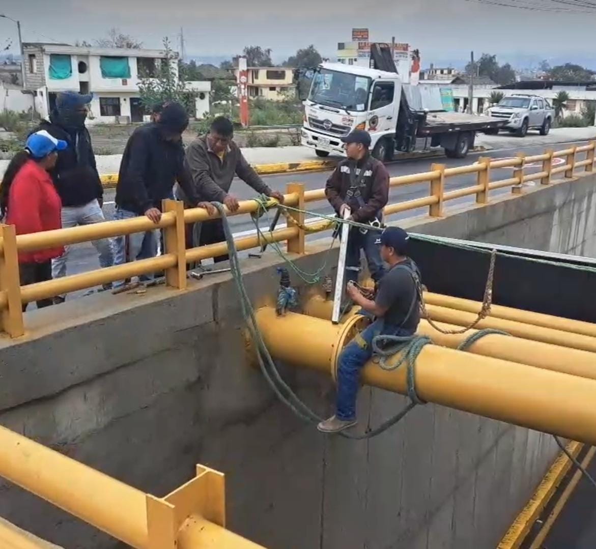 Esta mañana, los trabajadores de una constructora intentaron retirar las tuberías del intercambiador de Izamba, al norte de Ambato, debido a una deuda de aproximadamente 50.000 dólares que, según el encargado, no ha sido cancelada a más de un año.