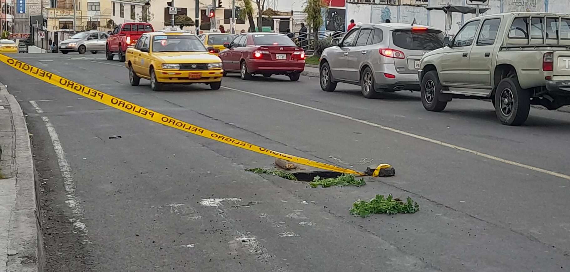 Según los vecinos del sector, este problema se habría denunciado hace días a las autoridades competentes y ante la falta de una respuesta, los agentes de tránsito optaron por colocar cintas amarillas, piedras y palos para evitar accidentes vehiculares.