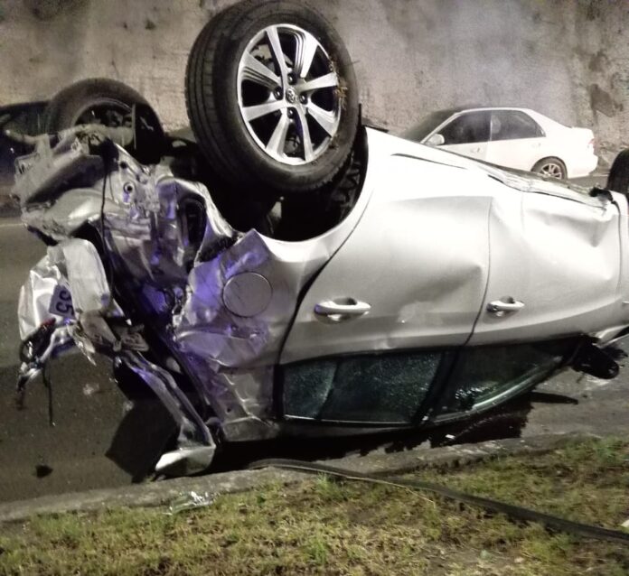 La noche del miércoles 30 de agosto, a las 22:45 se produjo un violento accidente de tránsito en el sector de las Viñas, en el paso Lateral de Ambato. El conductor, cuyo vehículo quedó en lamentables condiciones, solo presentó golpes leves.