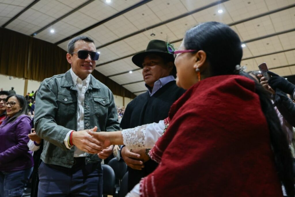 Con respecto al paro convocado por representantes de la CONAIE, el jefe de Estado fue enfático al aseverar: “al caos, a la violencia, a los intentos de desgarrar a la democracia, nosotros respondemos con obras, con incentivos sociales para que los más pobres puedan tener una vida digna”. Muestra de ello es que, hasta la fecha se han entregado más de 80.000 Bonos Raíces para dinamizar el campo; he invertido millones de dólares en maquinaria, créditos y Bonos del Desarrollo Humano.