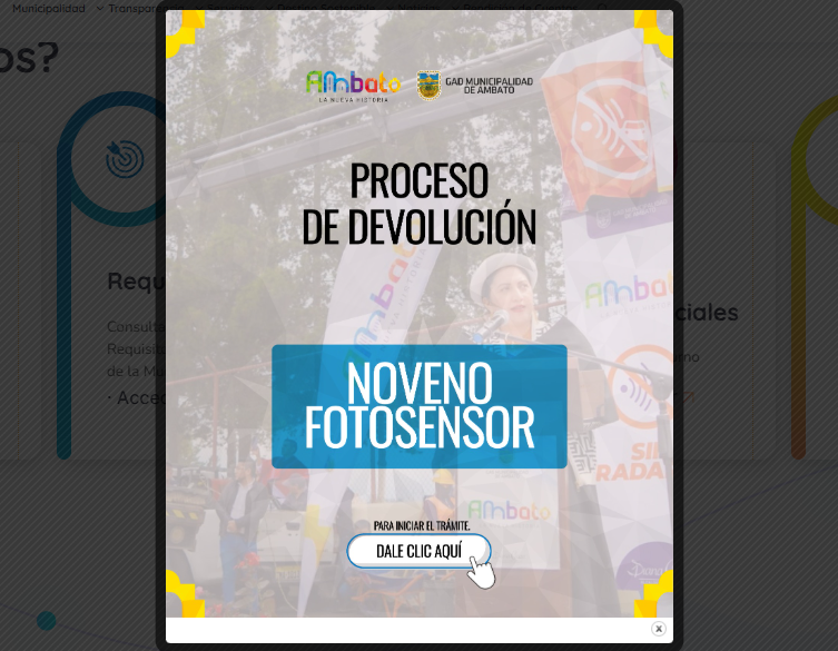 Para obtener la devolución de las multas pagadas por concepto del noveno peaje, el Municipio de Ambato, en su página web, habilitó un apartado en el cual se deben presentar una serie de documentos para poder acceder.
